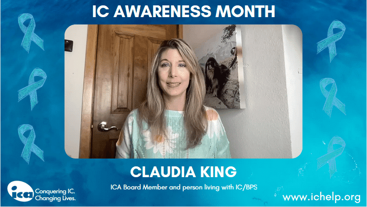 As part of IC Awareness Month, we are sharing the stories of ICA Board Members who are also living with IC/BPS. Click on the images below to listen as Dr. Laura Santurri, Claudia King, and Tacha Kasper share their stories of hope and how they use their professional and personal experiences to raise awareness and bring hope to the IC/BPS community!