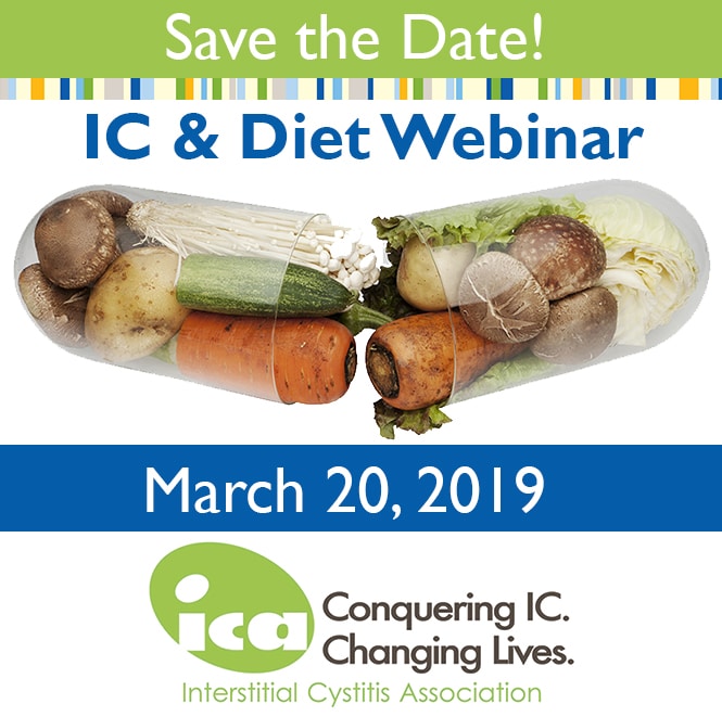ICA is excited to announce that we will be hosting a webinar on IC & Diet on Wednesday, March 20, 2019. Speakers will include Dr. Barbara Shorter, RDN, CDN, ICA Medical Advisory Board Member and Professor of Nutrition at LIU Post and Barbara Gordon, RDN, LD, former ICA Executive Director and Clinical Assistant Professor at Idaho State University. Stay tuned for more details.