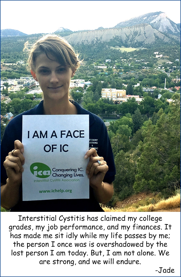 Photos and comments are needed! Please join Jade, Amy, Jenny, Cyndy, Emma, Dan, and Kerry and send us YOURS. Help ICA raise much needed IC awareness by printing out the attached PDF’s and taking a photo holding the appropriate sign. Send your pictures to icamail@ichelp.org.* In addition to your photo, please send us a quote that explains the affect IC has had on your life, whether as a patient or as a loved one of a patient.