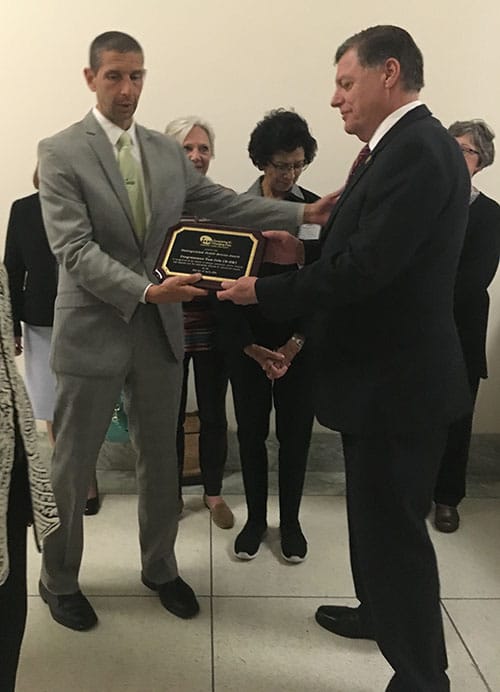 - ICA Board member Tony Tyler presenting an award to Representative Tom Cole (R-OK)