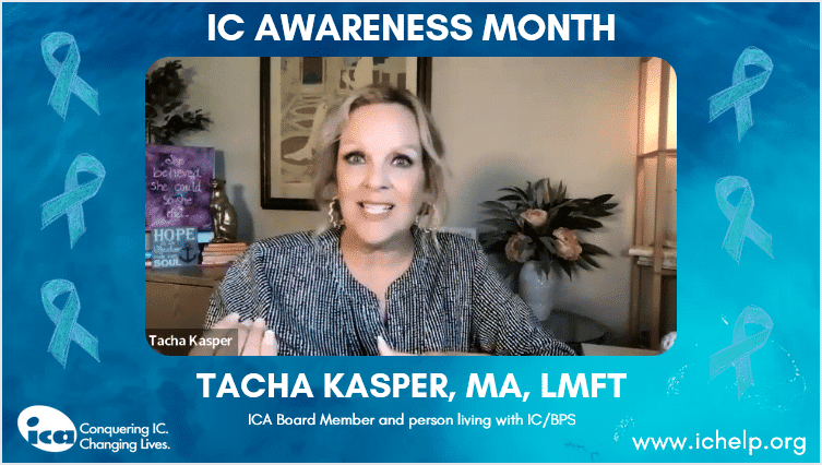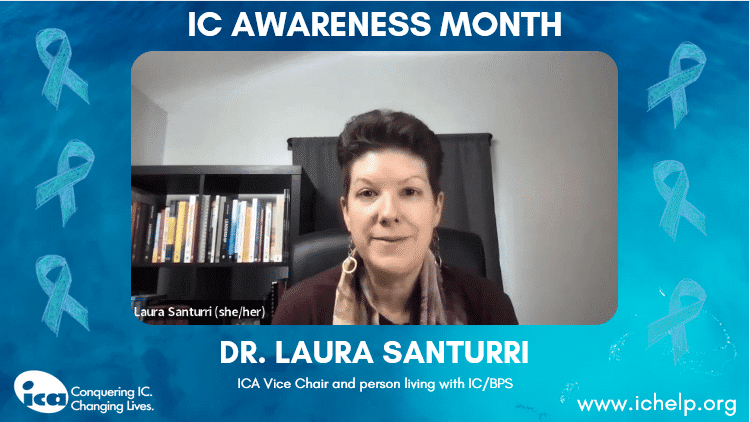 As part of IC Awareness Month, we are sharing the stories of ICA Board Members who are also living with IC/BPS. Click on the images below to listen as Dr. Laura Santurri, Claudia King, and Tacha Kasper share their stories of hope and how they use their professional and personal experiences to raise awareness and bring hope to the IC/BPS community!