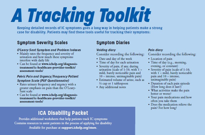 While disability benefits, and especially those from SSI, are not particularly generous, they can be a lifeline for IC patients. “It saved me from financial ruin,” one IC patient says. “It saved my house from being lost. I did not have to drain my family of resources. I am able to have medical help and purchase food. I am now able to concentrate on my health every day without worry of having to push myself into working and getting into trouble for being sick all the time.”