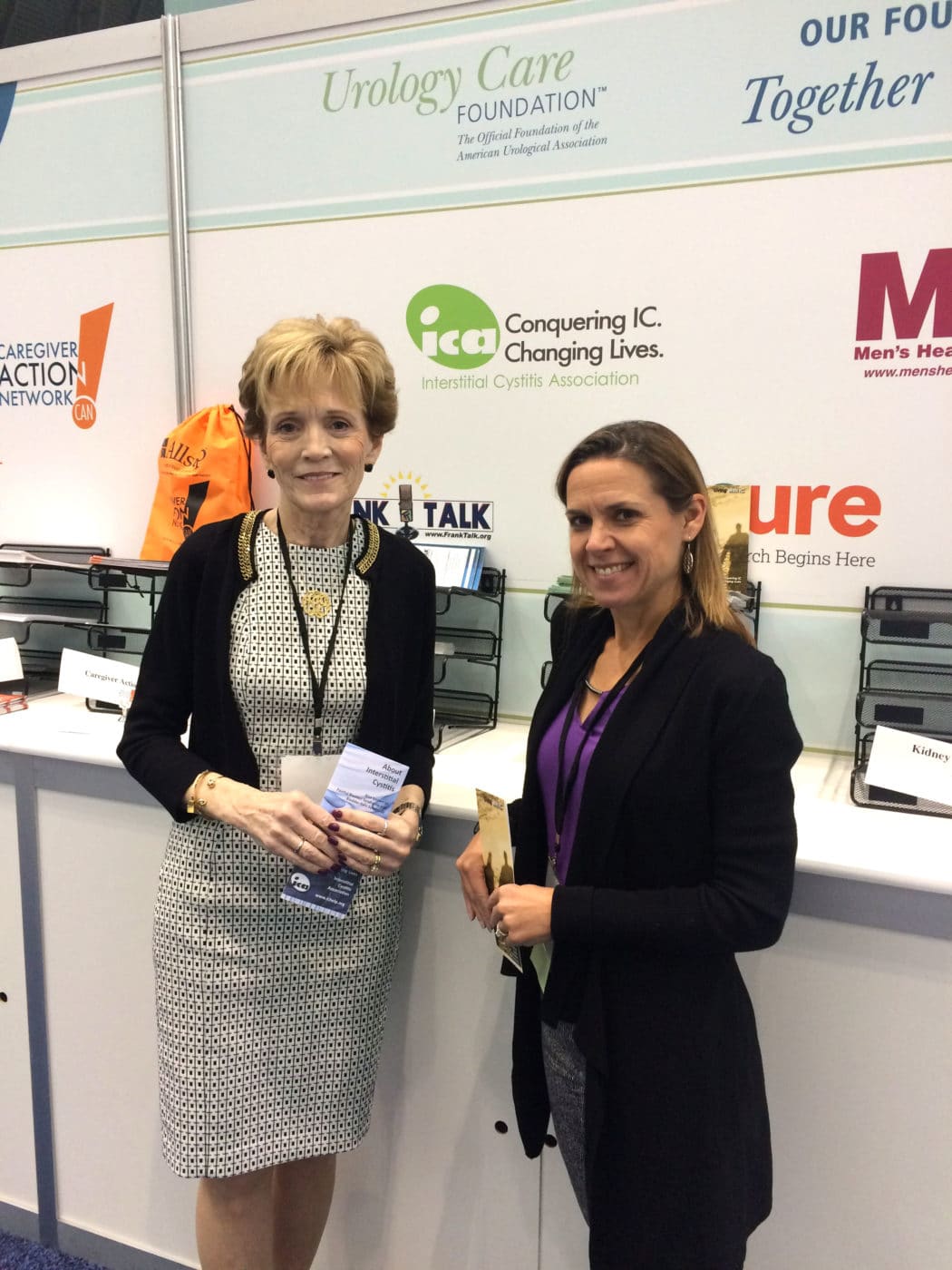 ICA participated in the AUA’s Patient Advocacy Hub which gave ICA Board Member Barb Zarnikow and ICA Executive Director Lee Lowery the opportunity to meet and speak with numerous attendees and share the voice of IC patients. Barb and Lee also presented “What Patients Want Their Doctors to Know About Living With IC” to urologists who visited the Patient Advocacy Hub to hear from participating patient advocacy organizations such as ICA. Thank you to all members of the ICA Facebook community who participated in our recent survey. Your responses were used as the patient’s voice in the presentation.